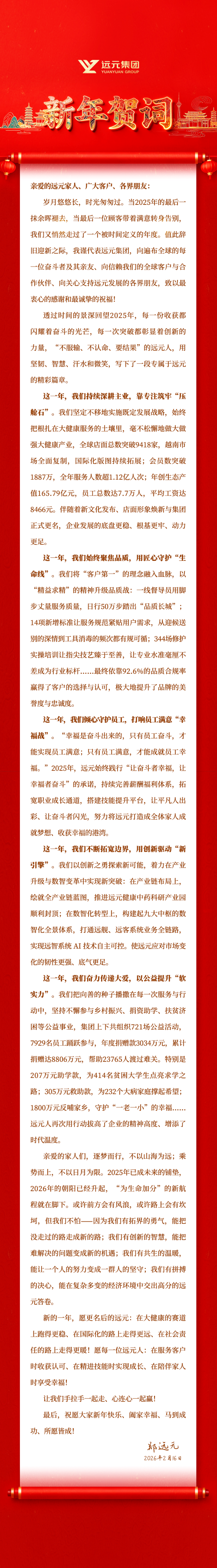 远元集团董事长兼总裁郑远元2026年新年贺词